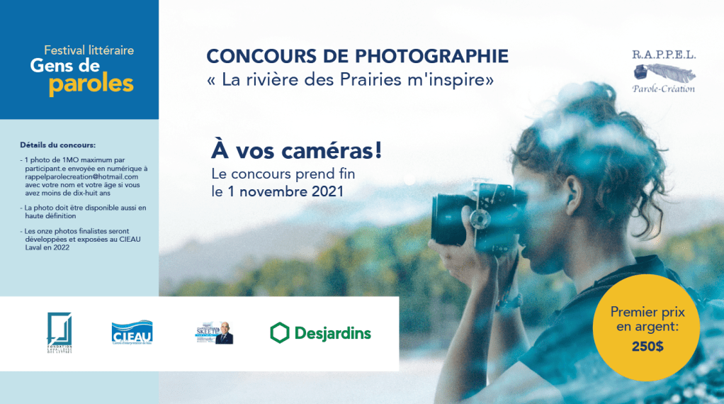 - Envoi d’une photo de 1 MO maximum par participant au courriel rappelparolecreation@hotmail.com en précisant votre nom et votre âge si vous avez moins de 18 ans