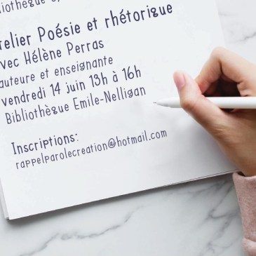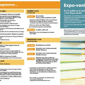 Cette année, dans le cadre de la Semaine des artisans de Laval, RAPPEL : Parole-Création organise le festival littéraire Gens de paroles. Toutes sortes d’activités vous y attendent : lectures publiques, ateliers d’écriture, micros ouverts, projection de films, danse, et plus encore. Il y en aura pour tous les goûts! Pour voir l’horaire et le détail des … Lire la suite Festival littéraire Gens de paroles