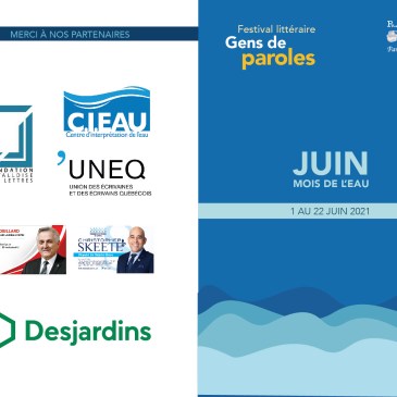 Découvrez les nombreuses activités du Festival littéraire et artistique Gens de Paroles à l’occasion du mois de l’eau! … Lire la suite Festival littéraire et artistique Gens de Paroles / Juin: Mois de l’eau