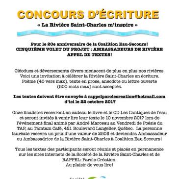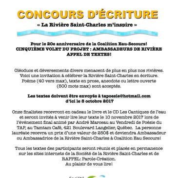 Auteurs et autrices: à vos plumes! Participez du 4 juin au 22 septembre 2021 au concours de contes sur le thème: « Les contes des mille et une gouttes d’eau » pour courir la chance de gagner 250$! … Lire la suite Concours d’écriture: Les contes des mille et une gouttes d’eau