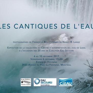 Bonjour à tous! Il me fait plaisir de vous transmettre une invitation de l’une de nos membres – de notre présidente, Nancy R. Lange. Le mercredi 6 décembre à 17h30 à l’Espace La Fontaine, assistez au vernissage de l’exposition Les Cantiques de l’Eau, une célébration de la plus vitale des ressources. Laissez-vous transporter à travers … Lire la suite Invitation